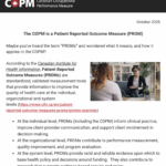The COPM is a PROM October 31, 2025UncategorizedCindy DeCola The October 2025 newsletter explores how the COPM functions as a Patient Reported Outcome Measure (PROM) – supporting client-centred care and outcome measurement in occupational therapy.